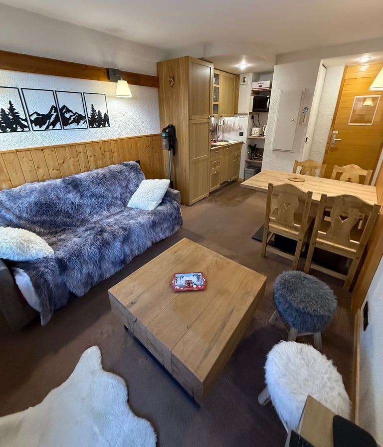 Profitez d’un appartement confortable de 32m², avec 4 lits + canapé-lit, balcon de 10m², place de parking couverte, local à ski et accès direct aux pistes à 100m (retour ski aux pieds !).